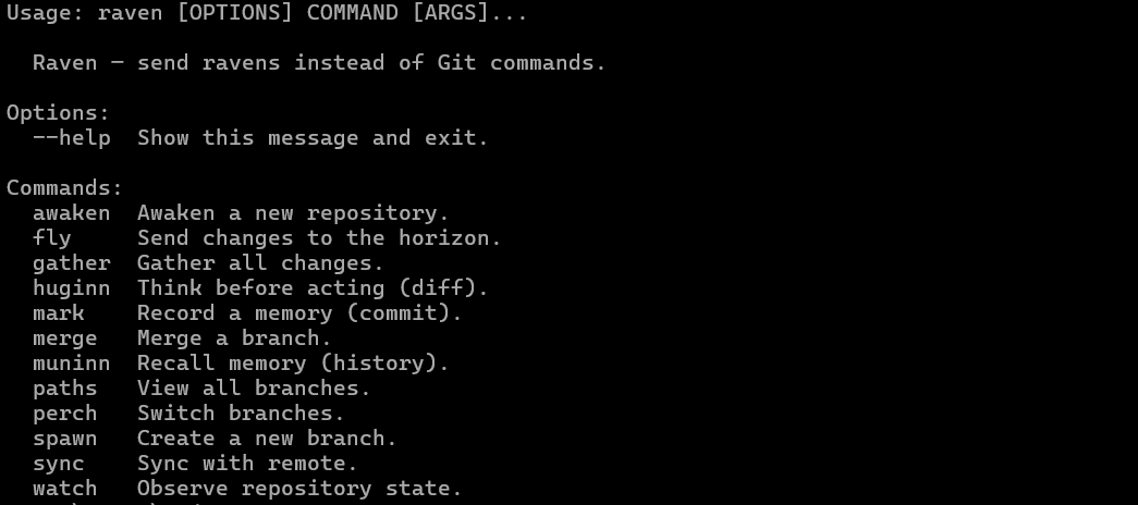 Odin-Raven is a semantic command-line interface built on top of Git, designed to transform low level version control commands into intuitive, intent-driven actions. It preserves Git’s core capabilities while improving developer experience through clearer, human centered command verbs. By adding a lightweight abstraction layer, it streamlines workflows without altering underlying Git behavior. Odin-Raven enhances clarity, efficiency, and usability while retaining the full power and reliability of Git.